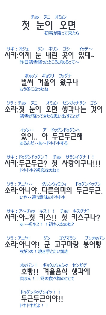 | タイトル | [韓国語会話/ハングルで一言]チョッ ヌニ オミョン(初雪が降ってきたら)/スラスラ韓国語 |