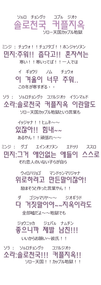 | タイトル | [韓国語会話/ハングルで一言] ソロー天国カップル地獄 /スラスラ韓国語 |